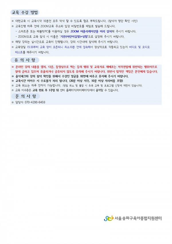 ▶ 해당 교육은 ZOOM을 활용한 실시간 온라인교육으로 진행됩니다.