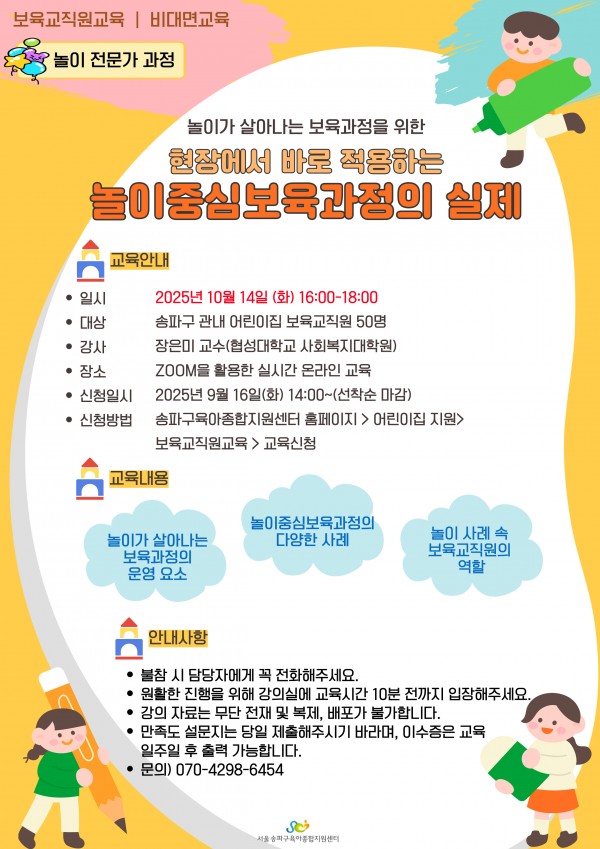 장소 | ZOOM을 활용한 실시간 온라인 교육 | 대상 | 송파구 관내 어린이집 보육교직원 |