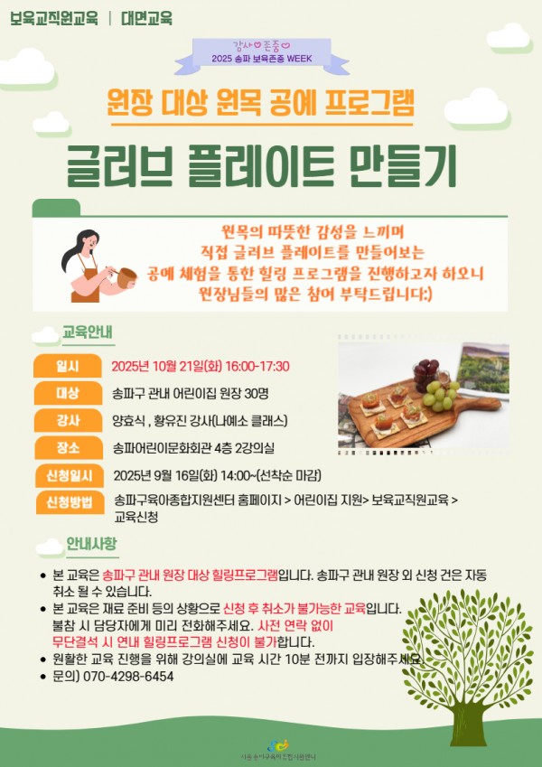 [대면] 원장 대상 원목 공예 힐링프로그램(글러브 플레이트)