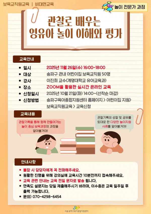 [실시간 온라인 교육] (놀이 전문가 과정) 관찰로 배우는 영유아 놀이 이해와 평가