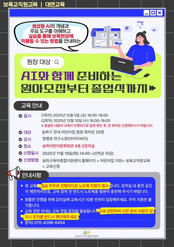 [대면] 원장 대상 AI와 함께 준비하는 원아모집부터 졸업식까지(★일정 확인 후 한 회차만 신청)