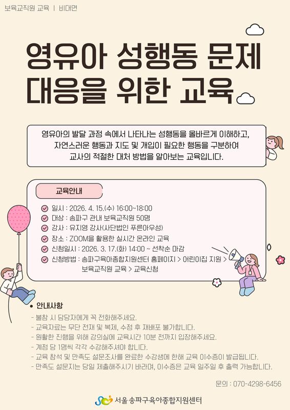 [실시간 온라인 교육] 영유아 성행동 문제 대응을 위한 교육