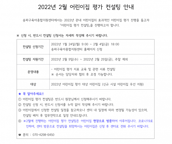 2022년 2월 어린이집 평가 컨설팅 신청