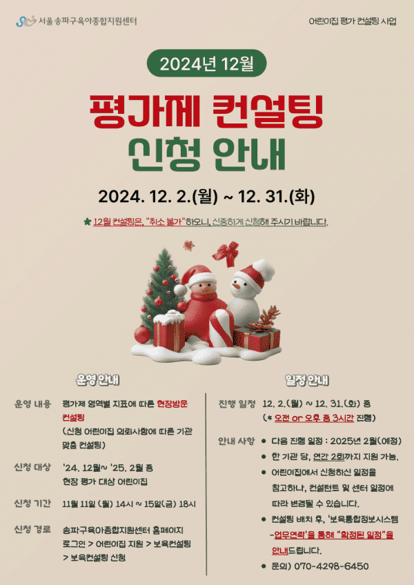 2024년 12월 어린이집 평가제 컨설팅 신청