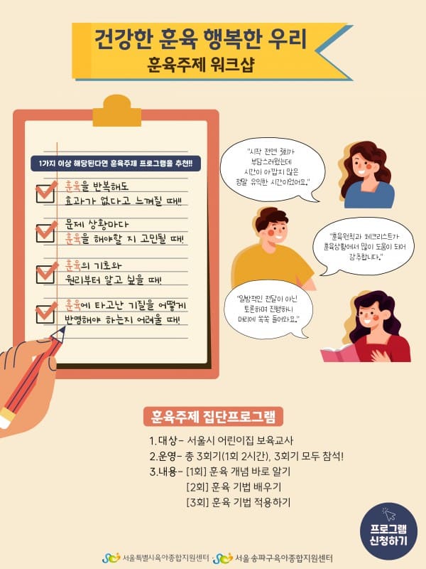 안내를 통해 아동학대예방을 지원하는 하는 훈육주제 워크샵을 진행하오니 관내 어린이집