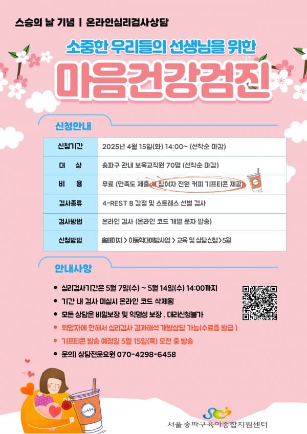 2025년도 스승의 날을 맞이하여 송파구육아종합지원센터에서는