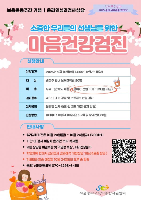 본 행사는 '2025년도 보육존중주간 기념 보육교직원 대상 정서지원 상담'프로그램입니다.