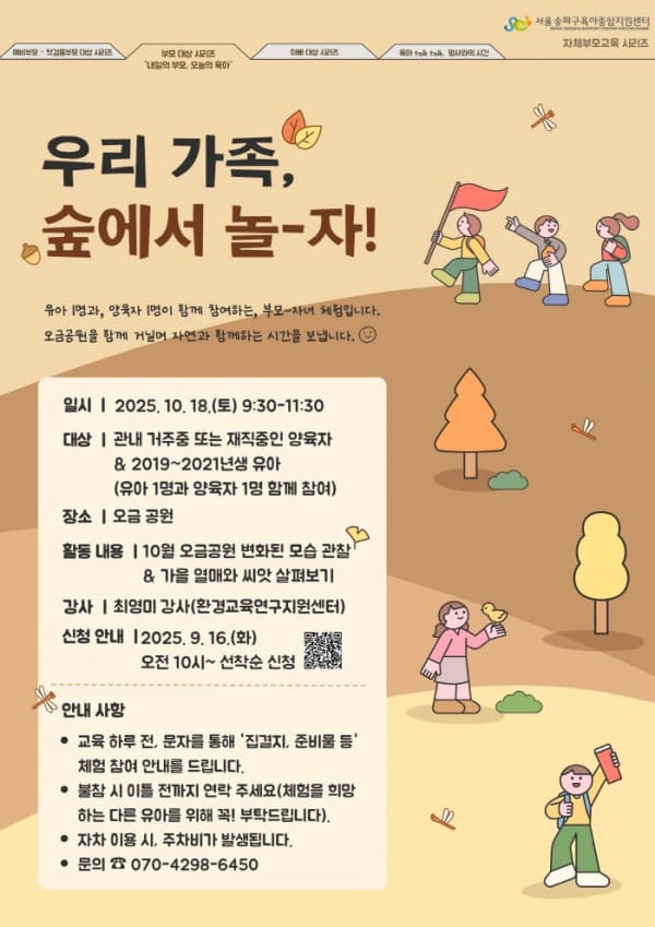 | 장소 | 오금공원 | 대상 | 관내 거주중 또는 재직중인 양육자 및 2019~2021년생 유아 |