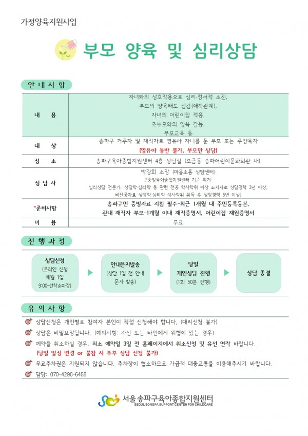 * 영유아 동반 불가, 부모만 상담 진행합니다.