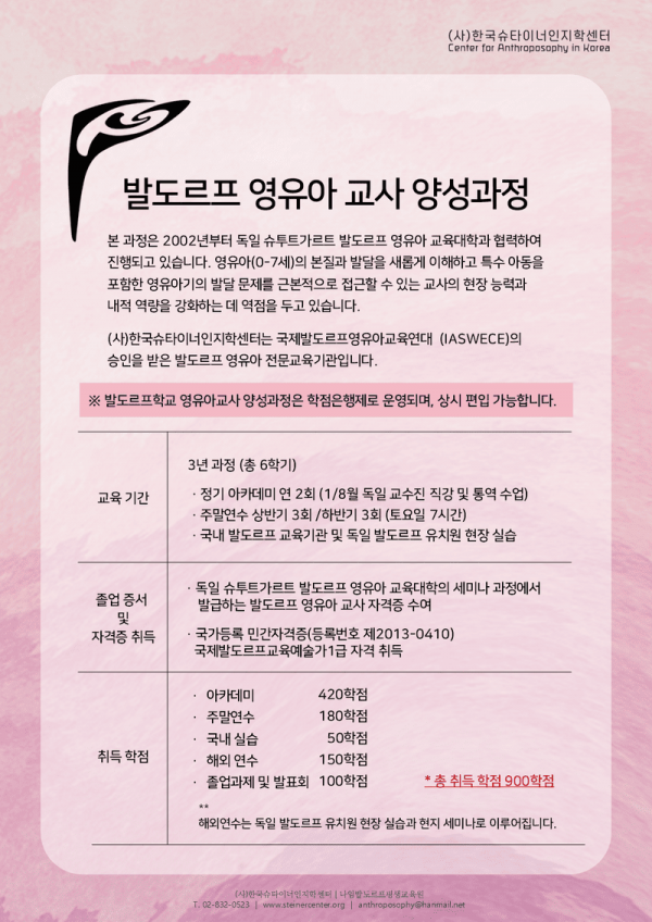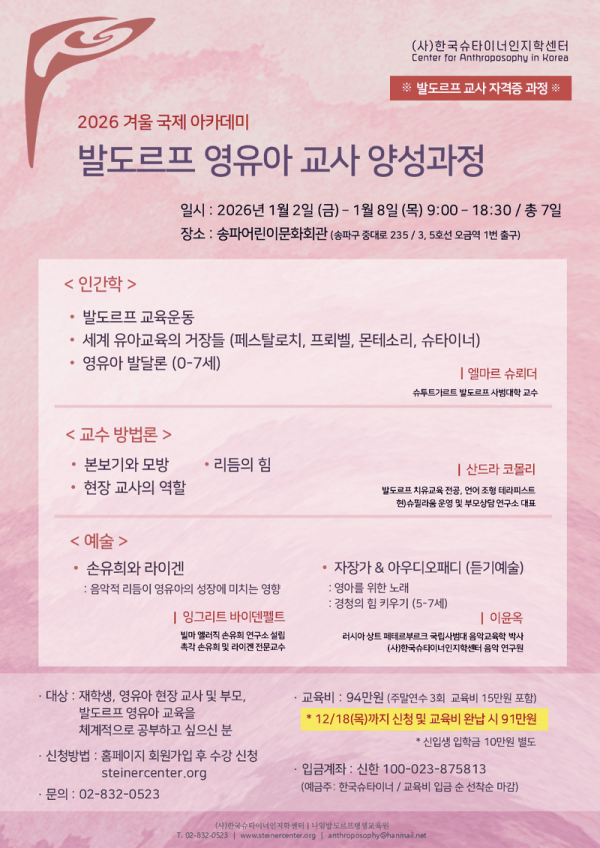 유관기관 발도르프 영유아 교사 양성과정 26년 겨울 아카데미