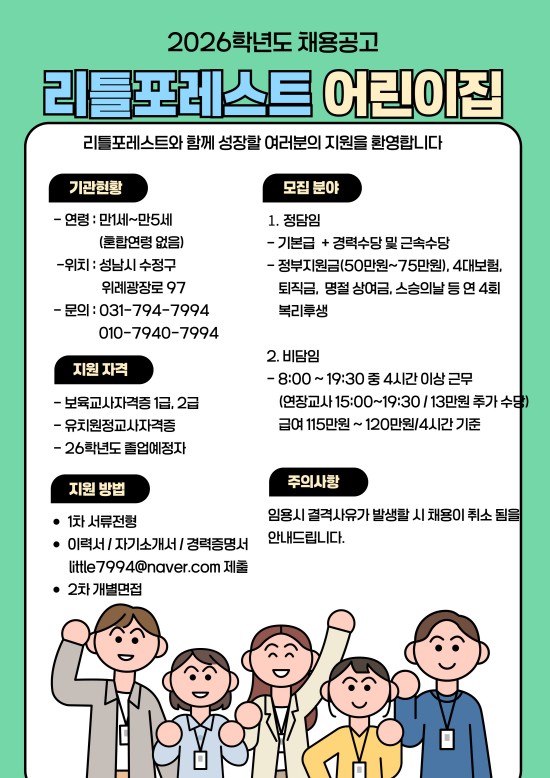 리틀포레스트와 함께 성장할 선생님의 지원을 환영합니다.