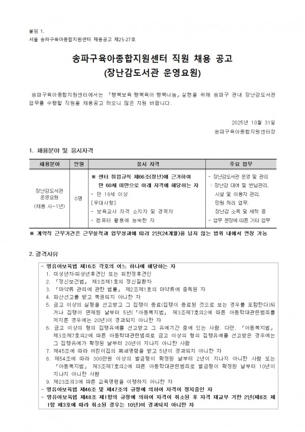 - 붙임1.장난감도서관 운영요원 채용공고문.pdf (99.0K) 17회 다운로드 | DATE : 2025-10-31 17:13:54