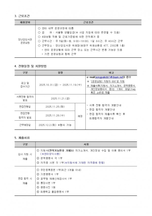 [송파구육아종합지원센터] 장난감도서관 운영요원 채용공고(~11/19)